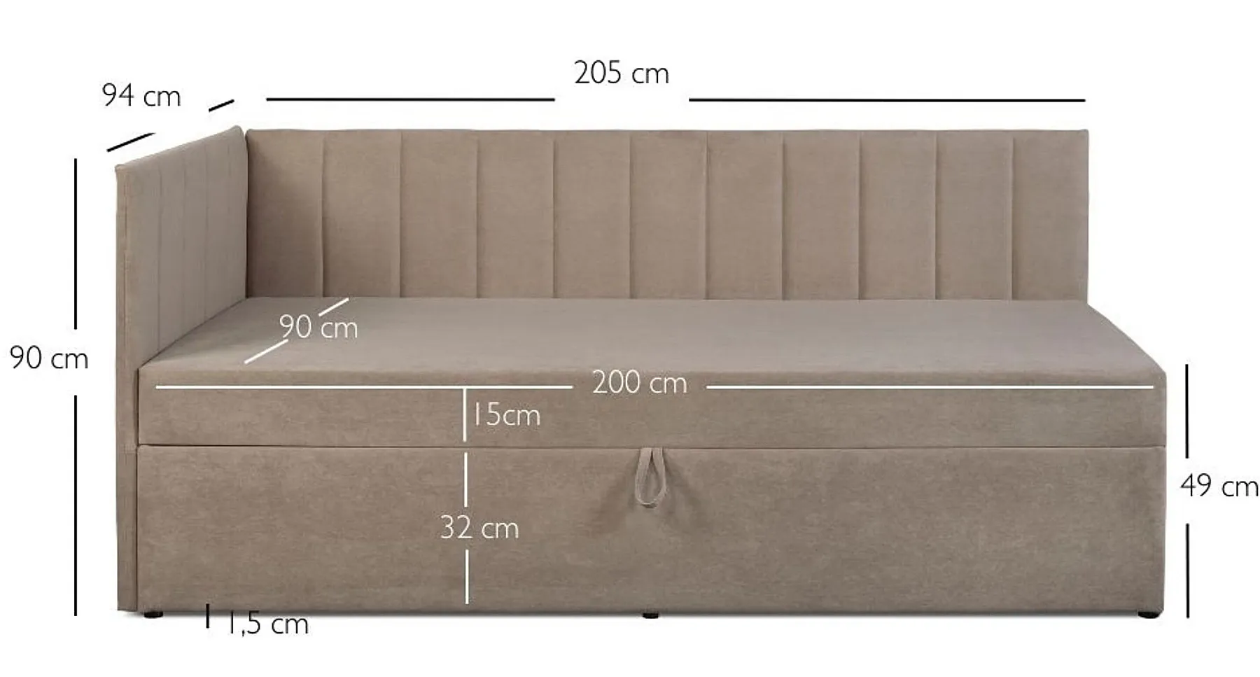 • Szerokość: 94, głębokość: 205 cm, wysokość: 90 cm
