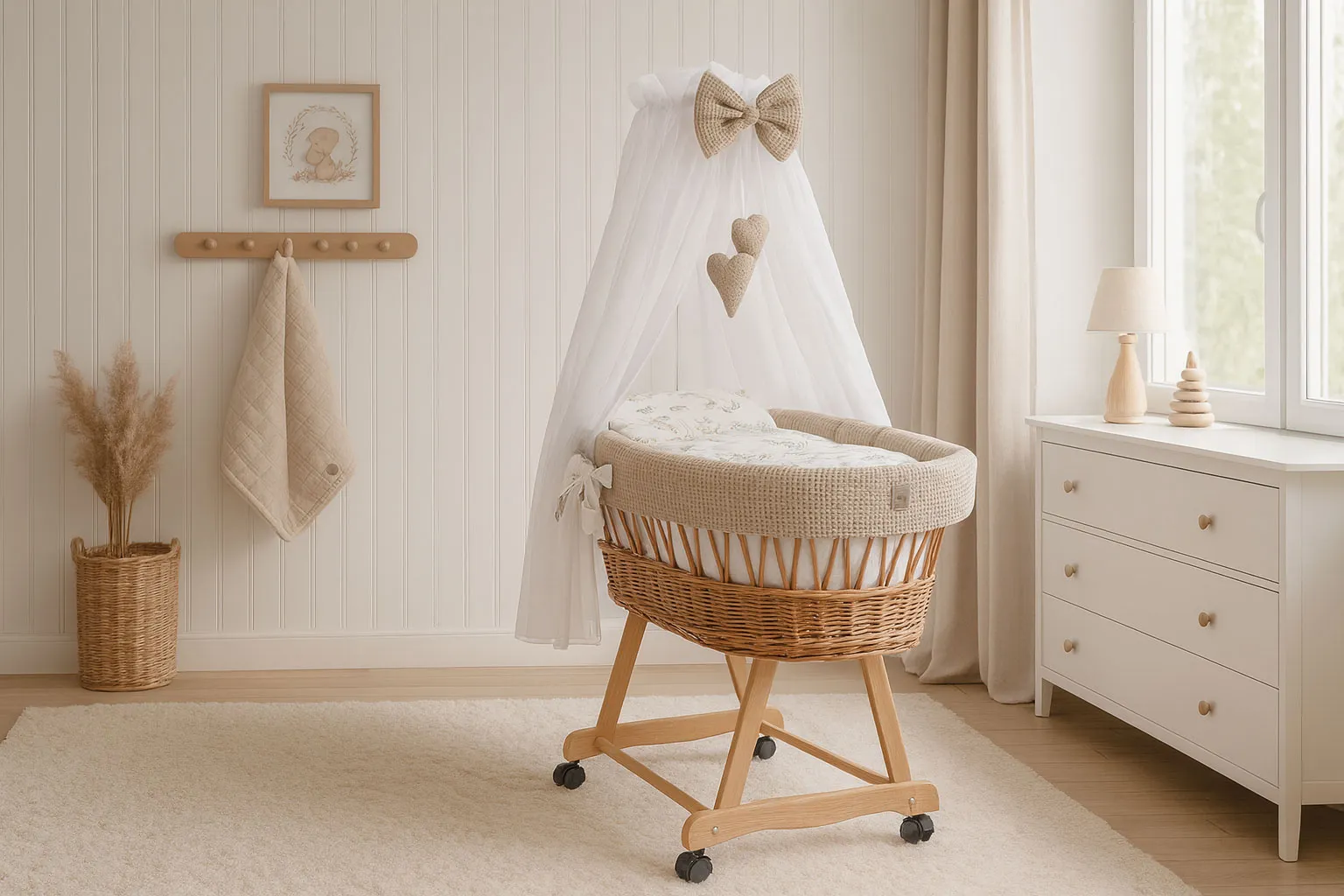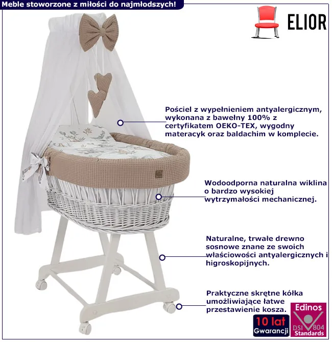 Dotyczy: Biały komplet łóżeczko kosz Mojżesza z baldachimem - Notiso 6X