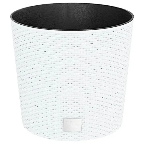 • Biała donica o wyglądzie rattanu, która dodaje elegancji każdej przestrzeni.