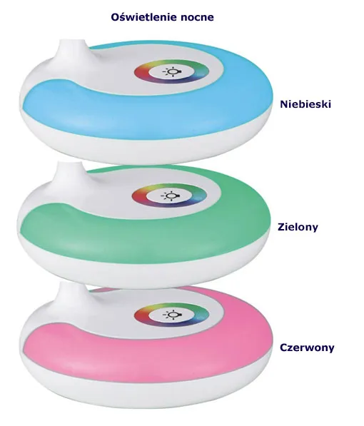 - oświetlenie nocne LED w podstawie (3 kolory)