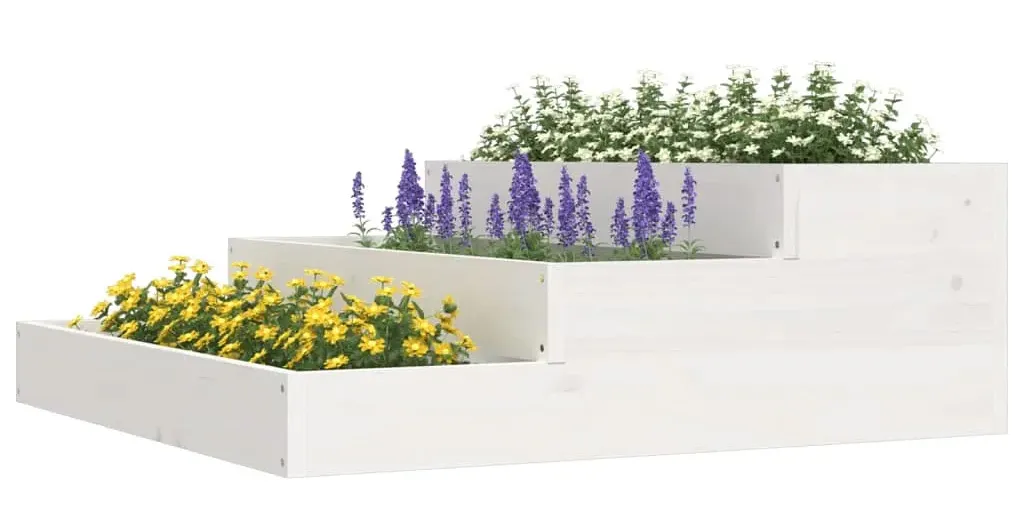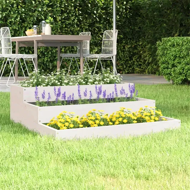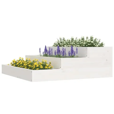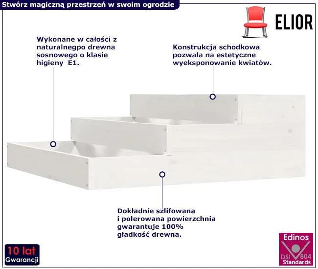 Biała drewniana schodkowa donica ogrodowa - Opia