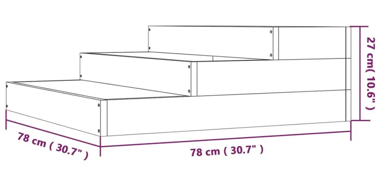Wymiary całkowite: szerokość 40 cm, głębokość 40 cm, wysokość, 70 cm.