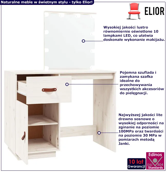 Dotyczy: Szara toaletka podświetlana z litego drewna - Reneste