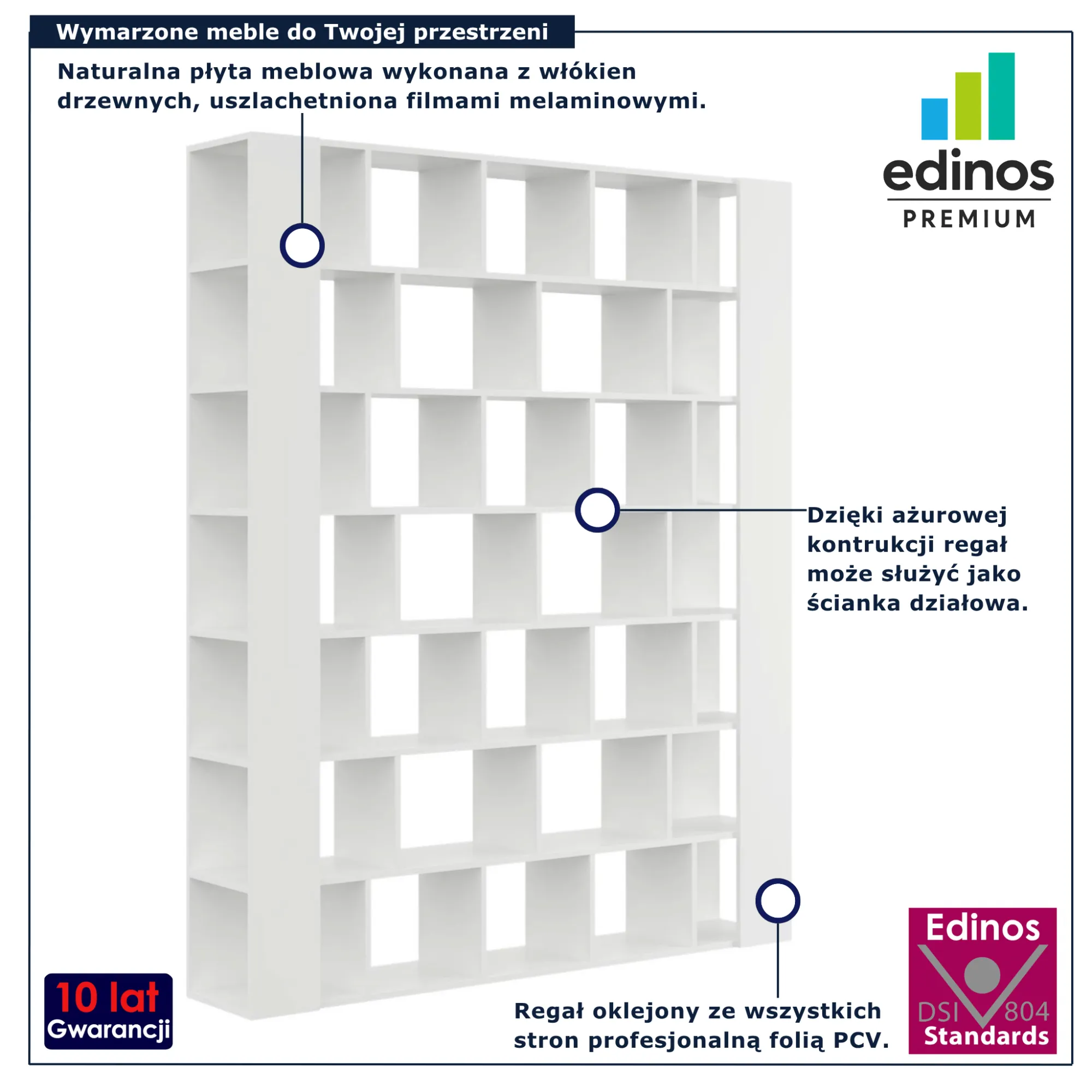 • Możliwość wykorzystania jako ścianka działowa do wydzielenia stref w pomieszczeniu