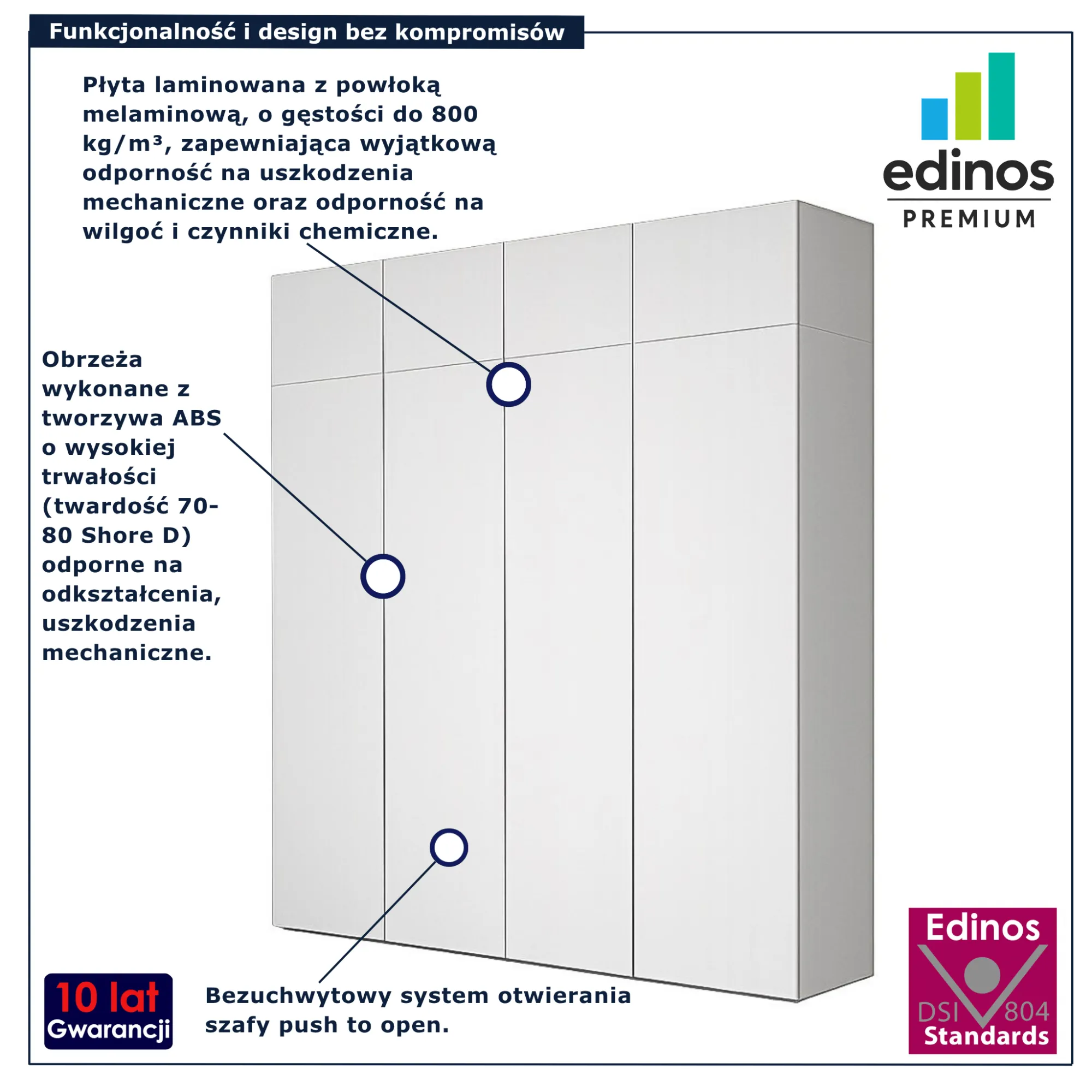 Varelli 4X to coś więcej niż szafa - to element, który zmienia sposób funkcjonowania w przestrzeni. To codzienna wygoda, lepsza organizacja i wnętrze, które wygląda spokojniej i bardziej dopracowanie. Jeśli chcesz wprowadzić do swojego domu więcej harmonii i ładu, nie odkładaj decyzji. Zamów Varelli 4X marki Edinos Premium już teraz w cenie {cena_promocyjna} i przekonaj się jak duze znaczenie ma doskonale dobrana szafa.