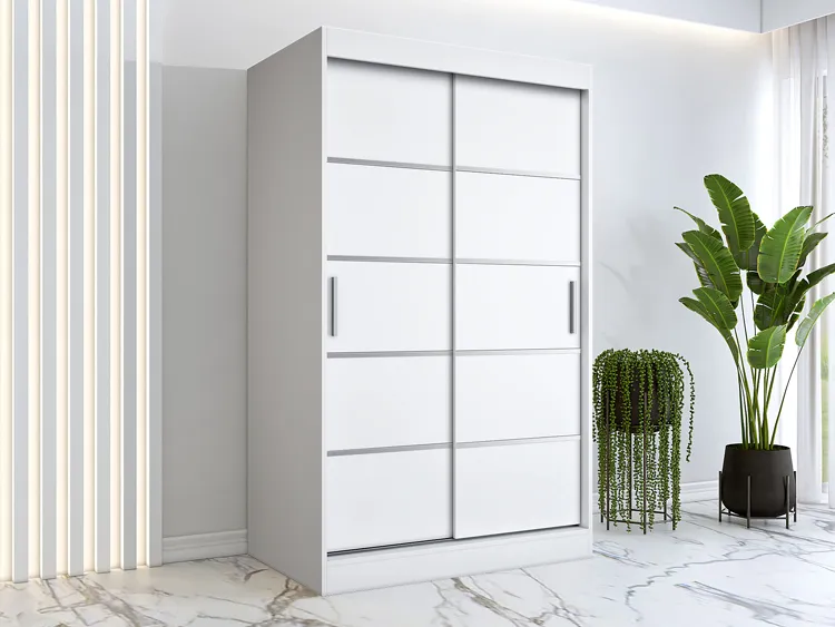 Szafa przesuwna Livia 120 3X to najnowsza propozycja marki Edinos Premium skierowana do osób oczekujących od mebli perfekcyjnej jakości i designu na najwyższym światowym poziomie. Bohosa 3X to precyzyjnie zaprojektowana szafa z aż dwoma układami wnętrza i konfiguracjami dopasowanymi do ubrań różnej długości. Za podwójnymi, przesuwnymi drzwiami kryje się podzielona na dwie części przestrzeń do przechowywania. W jednej z nich znajdują się 4 pojemne półki na ubrania, bieliznę lub dodatki. Druga część szafy została wyposażona w górną półkę i stabilny drążek na wieszaki. Dla wygody naszych klientów wprowadziliśmy możliwość zamiany górnej półki na dodatkowy drążek. Zamiana układu wnętrza nie wymaga rozkręcania szafy, co jest niezwykle praktyczne i pozwala na dowolne modyfikowanie konfiguracji w zależności od potrzeb i rodzaju garderoby. Gładkie wykończenie frontów i korpusu, bez widocznych wkrętów i śrub wspaniale podkreśla subtelną urodę mebla, nadając mu modernistycznego charakteru. Dla zwiększenia efektu dekoracyjnego, drzwi szafy Bohosa 3X zdobią stylowe poprzeczne listwy tzw. szprosy wiedeńskie oraz proste ergonomiczne uchwyty. Tak zaprojektowana szafa stanowi doskonały przykład funkcjonalnej rodzinnej garderoby w stylowym wydaniu, dopasowanym do różnorodnych aranżacji.