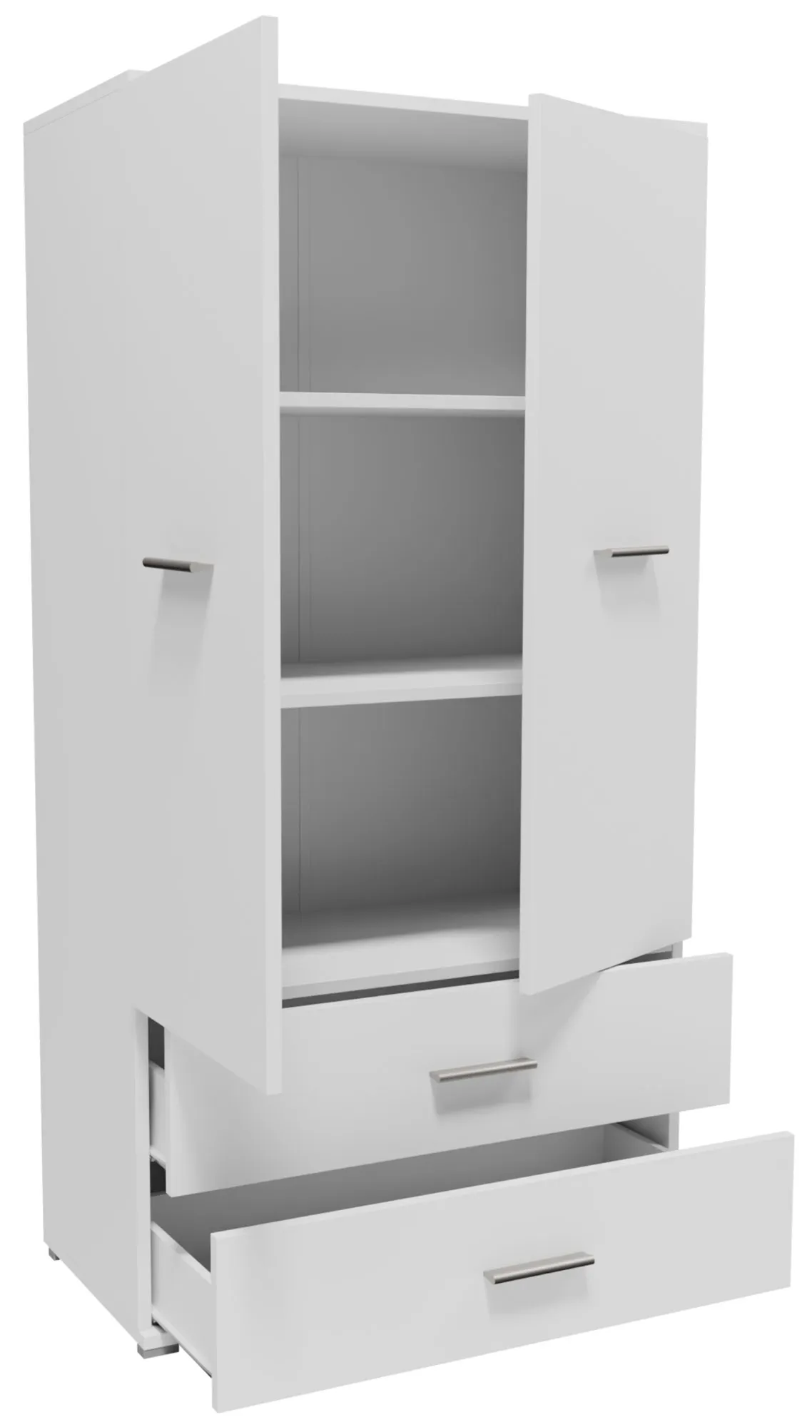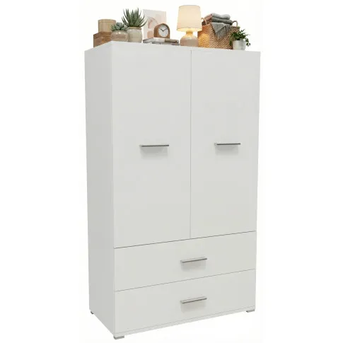 Biała dwudrzwiowa szafa z półkami i szufladami - Asendri 14X