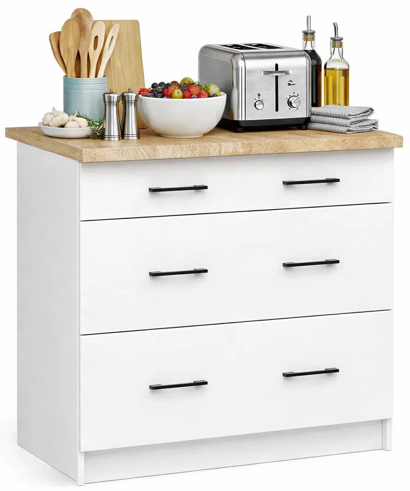 Blat jest wystarczająco duży, aby pomieścić wszystkie moje naczynia i akcesoria, a szuflady są bardzo praktyczne. Montaż był szybki i łatwy, a komoda dotarła w doskonałym stanie