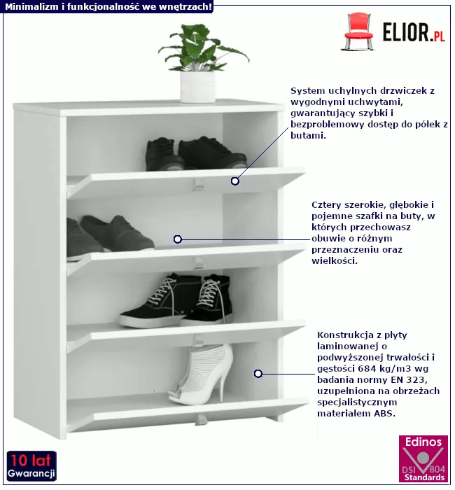Jestem bardzo zadowolona z szafki,jest bardzo ladna,zgrabna i jestem z niej zadowolona,nie zajmuje duzo miejsca a wszystkie buciki weszly bez problemu DZIEKUJE I POLECAM INNYM