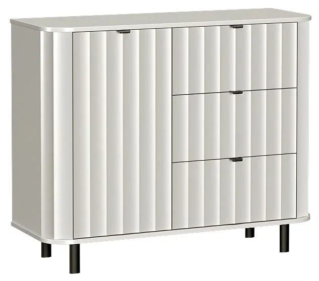 Biała komoda ryflowana z 3 szufladami - Egesio 5X