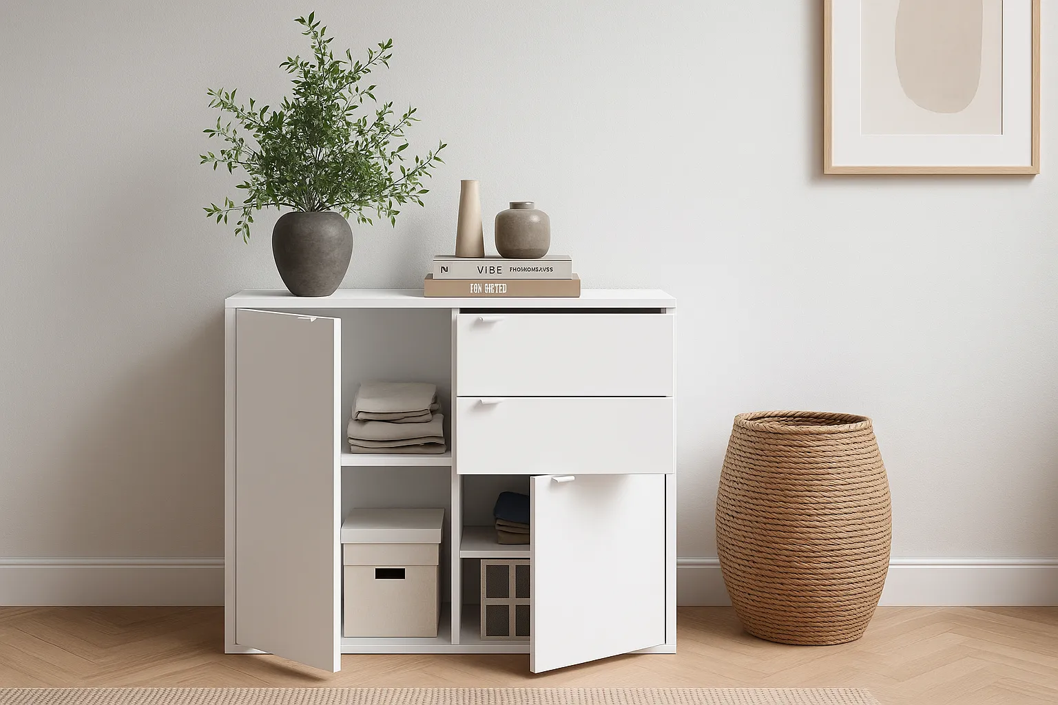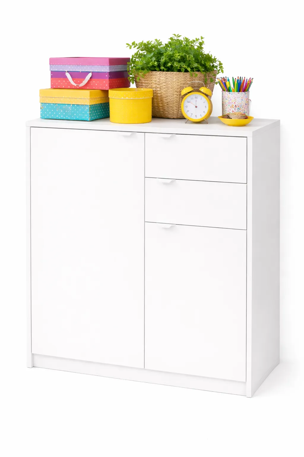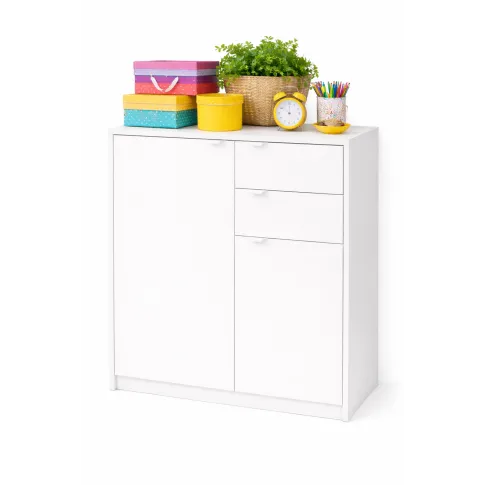 Biała komoda z 2 szufladami i drzwiczkami - Pevo