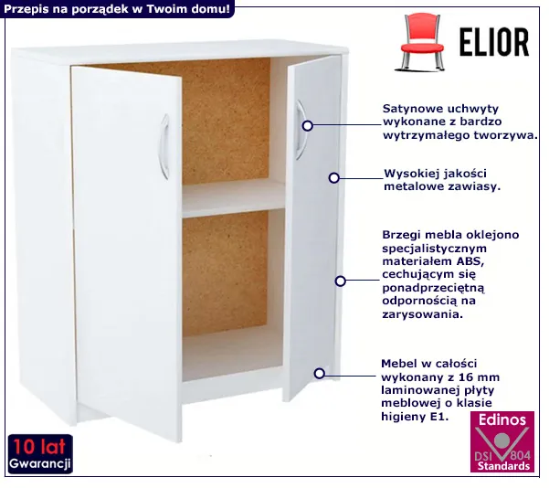 - Produkt posiada certyfikat jakości "Edinos Standards DSI 804", który potwierdza najwyższą jakość wykonania mebla oraz pełny stopień zgodności poszczególnych jednostek wytworzonego wyrobu z przyjętym wzorcem.