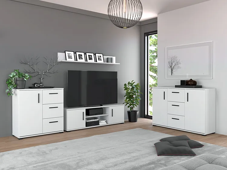 Kolekcja Mirado marki Elior to propozycja dedykowana osobom poszukującym solidnych i funkcjonalnych mebli w nowoczesnym wydaniu. Meble z kolekcji Mirado są wykonane z 18 mm płyty laminowanej i oklejone tworzywem ABS o zwiększonej odporności na ścieranie. To gwarantuje ich trwałość i odporność na zarysowania. Zastosowane prowadnice rolkowe w szufladach oraz blokada wysuwu sprawiają, że użytkowanie jest zarówno wygodne, jak i bezpieczne. Proste formy zestawione z klasyczną kolorystyką w 3 dekorach do wyboru oferują nieograniczoną gamę możliwości ciekawych aranżacji wnętrz. O ponadczasowym wdzięku Mirado decydują detale. Stylowe, ergonomiczne uchwyty i solidne stopki nie tylko stabilizują meble, ale również podkreślają ich modernistyczny charakter. Seria Mirado składa się z 7 modeli: szafki wiszącej, półki ściennej, 4 modeli komód i szafki RTV. Całość uzupełniają 4 gotowe zestawy do wyboru, co pozwala na łatwe dopasowanie mebli do indywidualnych potrzeb i metrażu pomieszczenia. Poznaj kolejną propozycję z kolekcji Mirado - komodę z szufladami i szafkami 140 cm Lamans 8X.