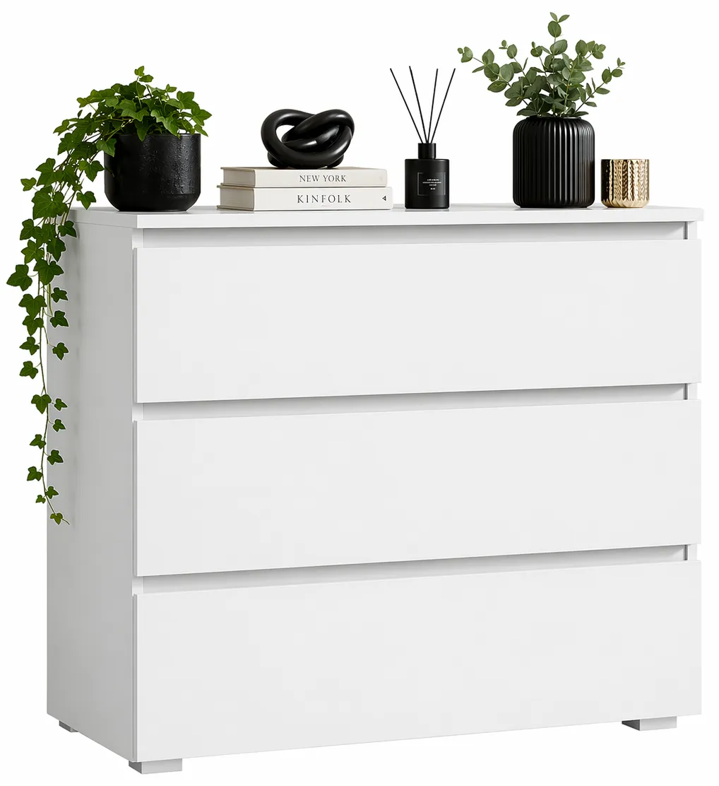• trzy wysokie i głębokie szuflady oferują obfite miejsce do przechowywania, pomieszczą wiele przedmiotów, od odzieży po akcesoria domowe.