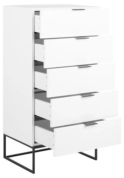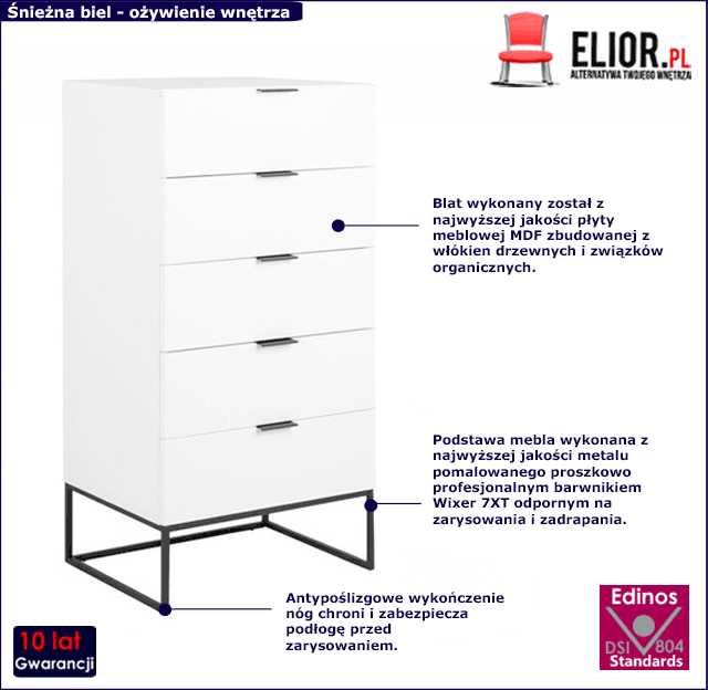 - Modna kolorystyka: biały. Kliknij w link i sprawdź także inne komody z 5 szufladami w sklepie Edinos.pl. Stwórz swój praktyczny zestaw mebli.