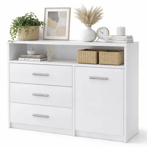Dotyczy: Komoda do salonu z szufladami i półkami dąb sonoma + biały - Nemeso 4X