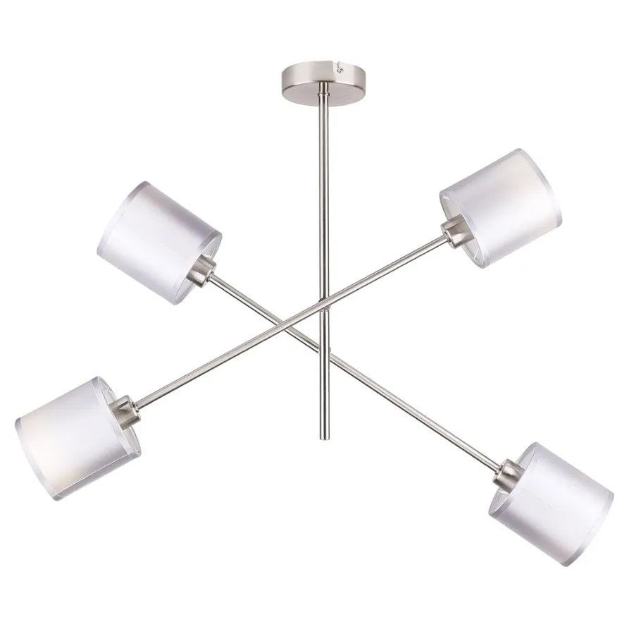 Głównym elementem wyróżniającym tę lampę są jej walcowe abażury, wykonane z tkaniny, którą dodatkowo usztywnia PVC. Dzięki temu abażury zachowują swoją geometryczną formę, a jednocześnie rozpraszają światło w miękki i równomierny sposób. Kolorystyka abażurów to eleganckie odcienie szaro-srebrne, które w połączeniu z satynowym wykończeniem tworzą niezwykle harmonijną paletę kolorów. Ten wyjątkowy zestaw czyni lampę K249-Fifrox doskonałą dekoracją do nowoczesnych wnętrz. Metalowe ramiona lampy, zakończone są abażurami w modnym szarym kolorze. To połączenie nadaje lampie elegancji i nowoczesności, co sprawia, że doskonale wpisuje się w różnorodne style aranżacyjne. Lampa K249-Fifrox to nie tylko źródło światła, ale także doskonała dekoracja, która rozświetli każde pomieszczenie. Jej chromowa podstawa łączy się z satynowymi kloszami w harmonijny sposób, przyciągając uwagę i nadając wnętrzu niepowtarzalnego charakteru.