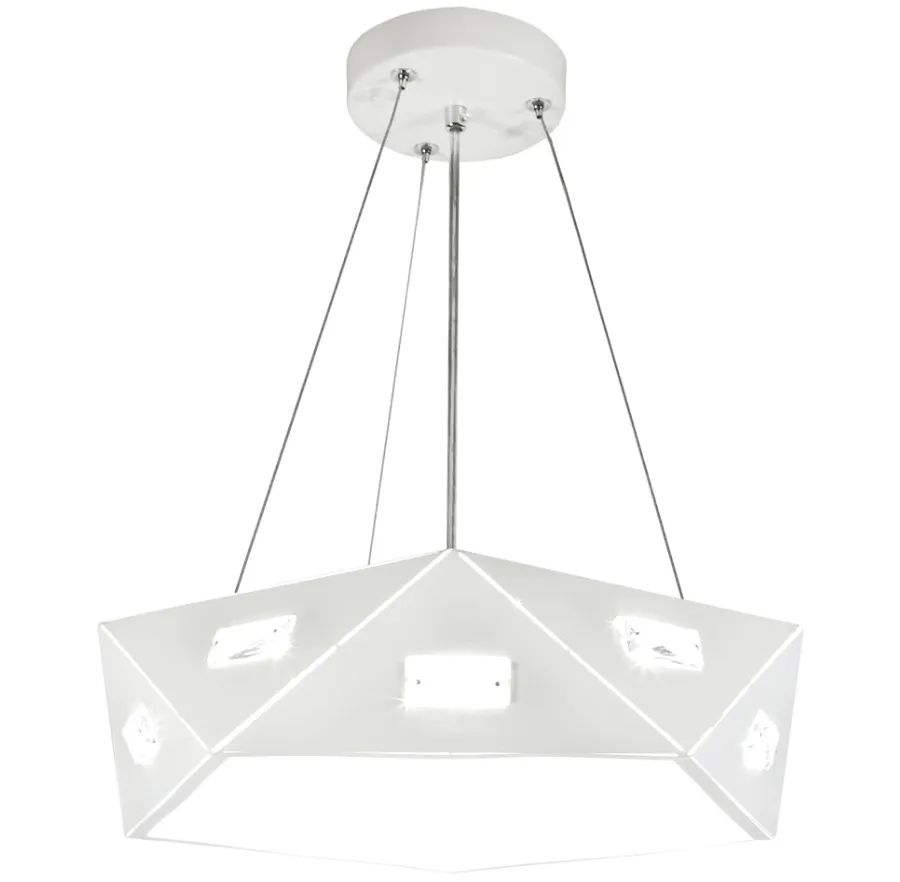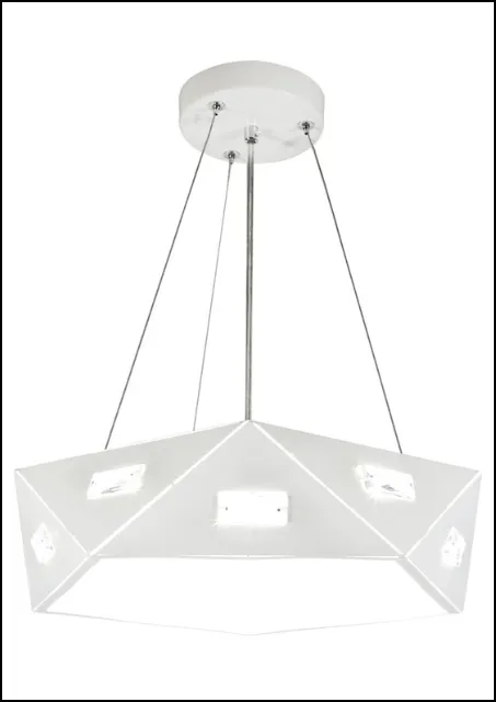 Marka Lumes prezentuje pięciokątną lampę wiszącą, która urozmaici każde nowoczesne wnętrze. Jest perfekcyjna dla miłośników nowoczesnego oświetlenia w prostym  designu. Lampa  K275-Soccex to nietuzinkowy żyrandol, który od razu przyciąga uwagę swoim intrygującym designem. Zawieszony na stalowych linkach, ten wyjątkowy żyrandol posiada metalowy abażur w głębokim kolorze czarnym, co nadaje mu wyrazisty charakter i elegancję.