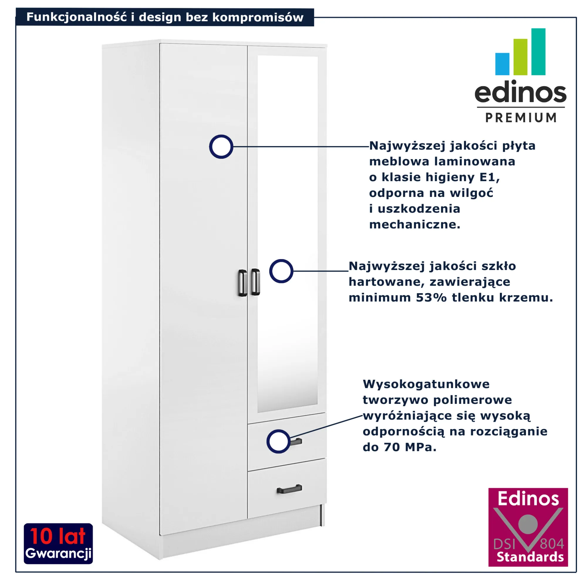 Biała minimalistyczna szafa z szufladami i lustrem - Larimox