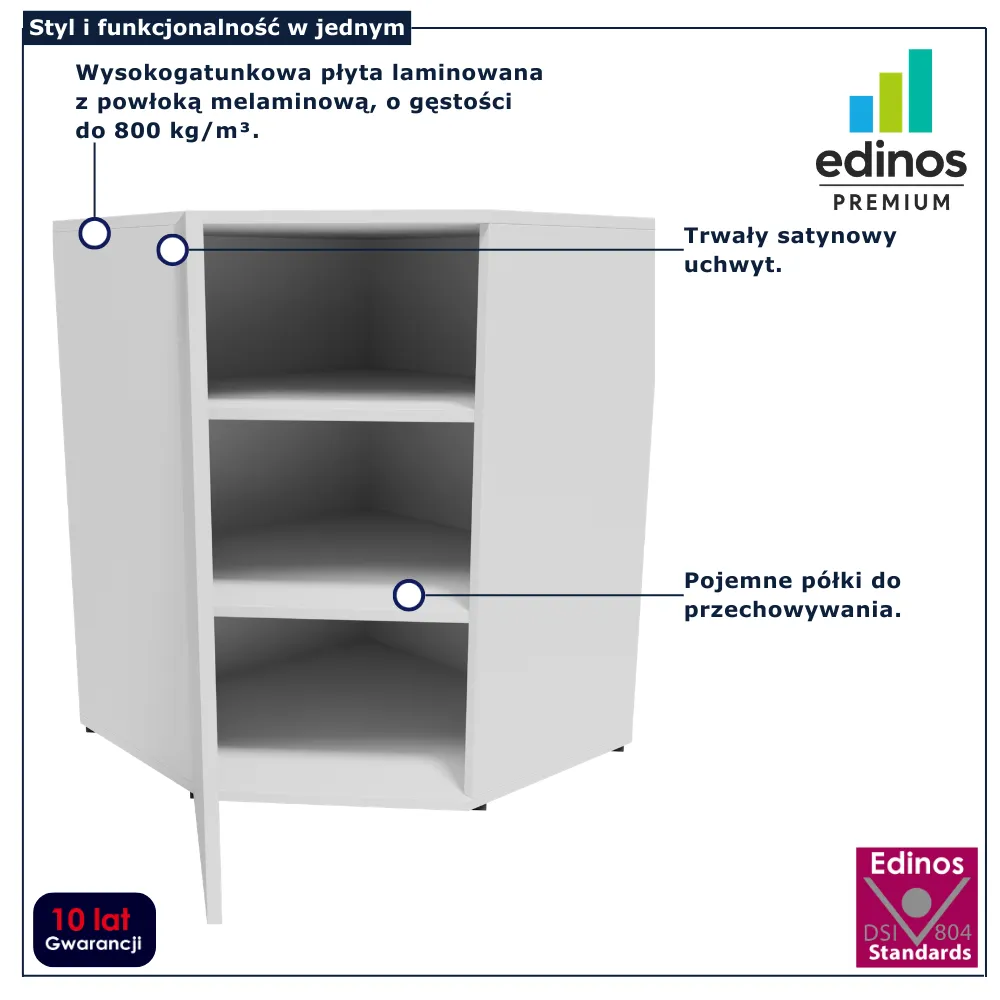 Szafka narożna Asendri 6X marki Edinos Premium to idealne rozwiązanie dla osób, które chcą w pełni wykorzystać potencjał swojego wnętrza. Dzięki niej nawet narożnik może stać się praktyczną i estetyczną przestrzenią do przechowywania. To mebel, który pomaga utrzymać porządek i wprowadza do pomieszczenia harmonijny ład. Wybierz szafkę narożną Asendri 6X marki Edinos Premium w cenie 428 zł i wykorzystaj każdy centymetr swojego wnętrza w przemyślany sposób.