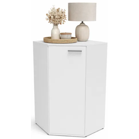 Biała komoda narożna jednodrzwiowa z półkami Asendri 6X