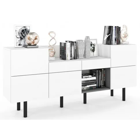 - Kolor: Biały mat + grafit mat. Zobacz także inne komody nowoczesne w sklepie Edinos.pl. Stwórz swój praktyczny zestaw mebli.