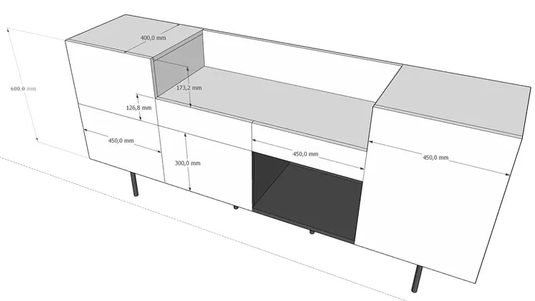- Wymiary: szerokość - 180 cm, głębokość - 40 cm, wysokość - 60 cm.