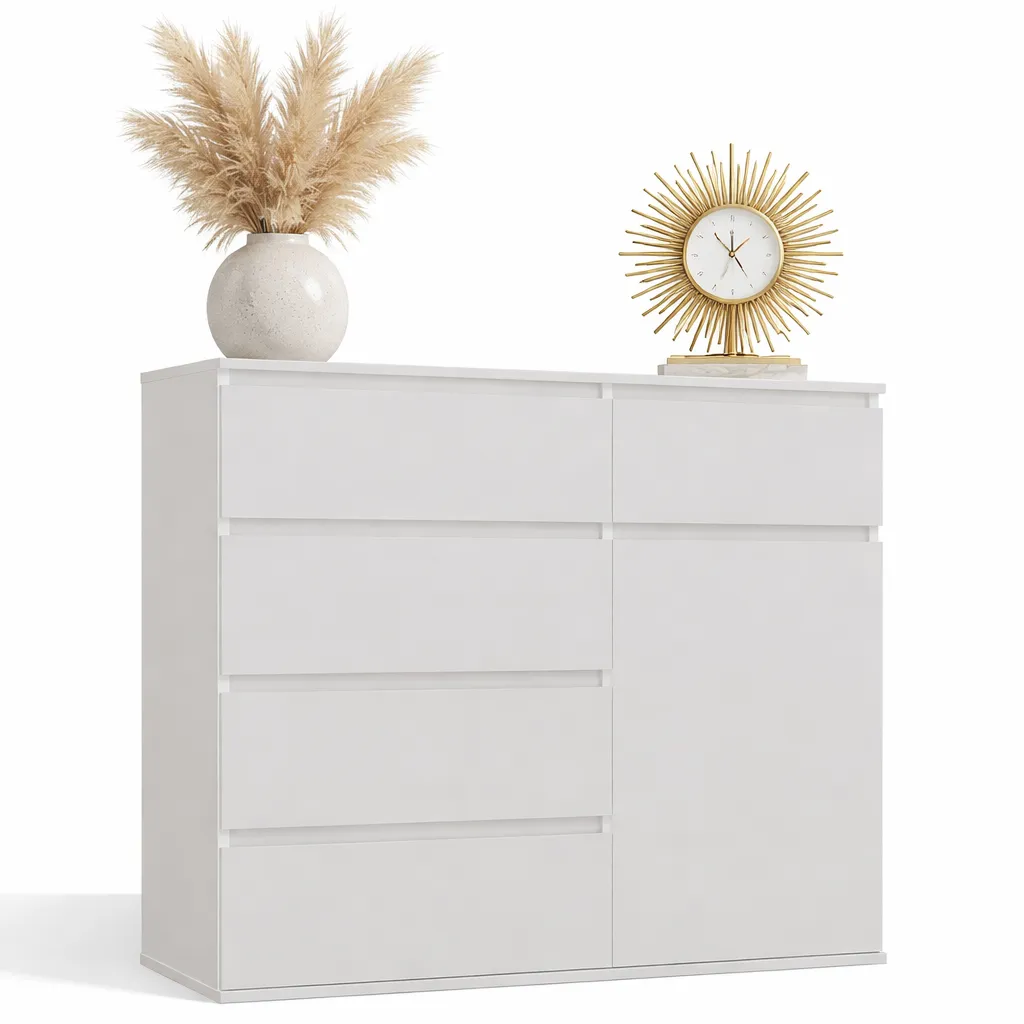 Szukałam czegoś do przedpokoju i ta komoda okazała się idealna. Jest pojemna - w szufladach mieszczą się wszystkie drobiazgi, a na półkach ładnie prezentują się dekoracje. Nowoczesny design pasuje do różnych stylów aranżacji. Polecam jeśli potrzebujesz funkcjonalnego i ładnego mebla.