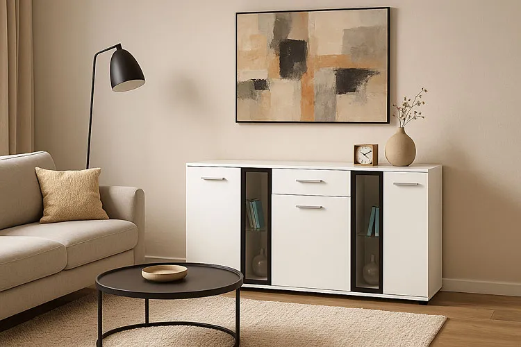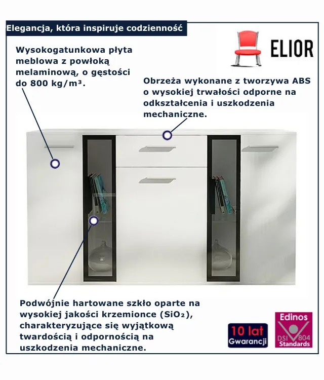 Dotyczy: Komoda ze szkłem w kolorze dąb artisan + biały - Melorix