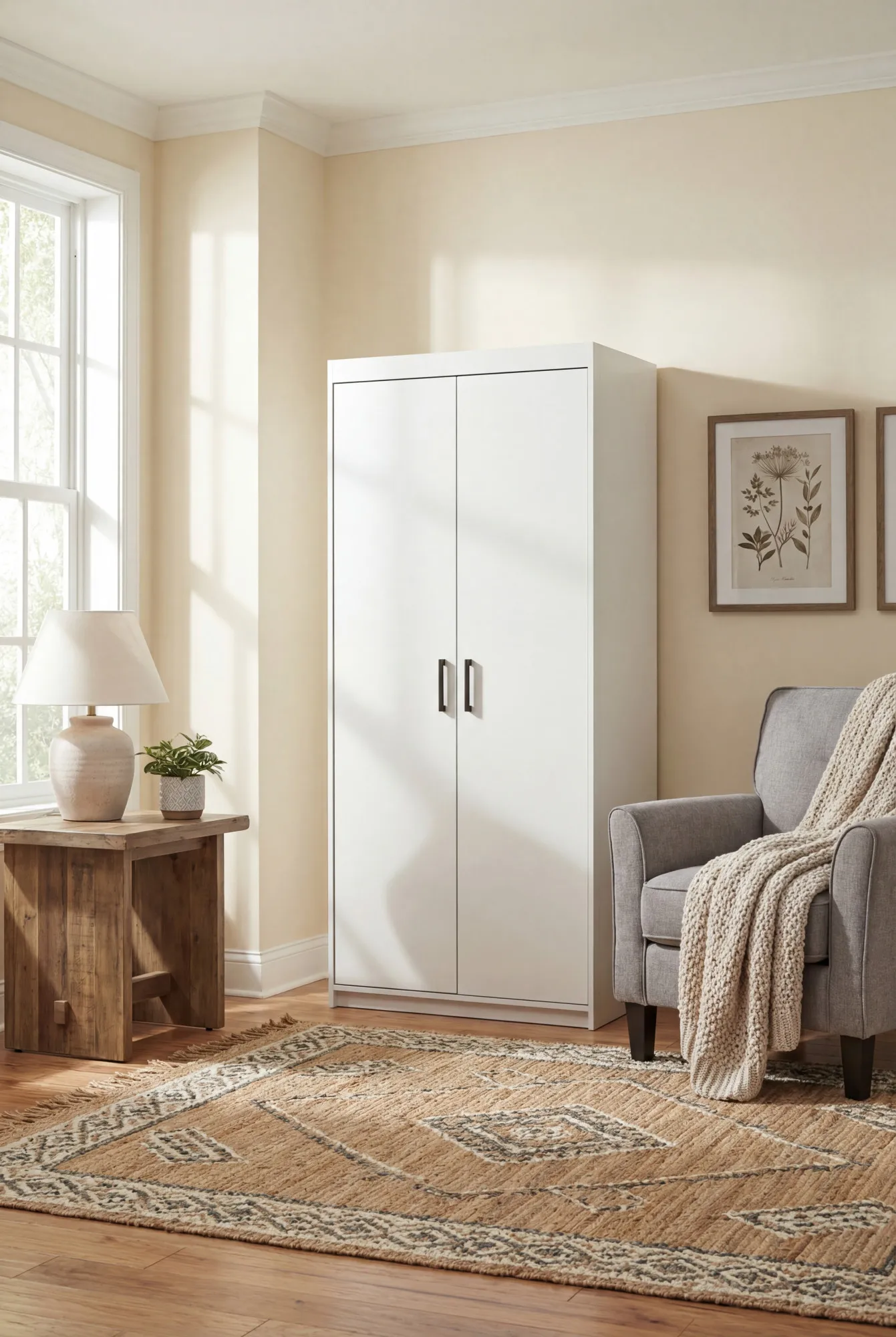 Aranżacja wnętrza z białą szafą Parioni 4X