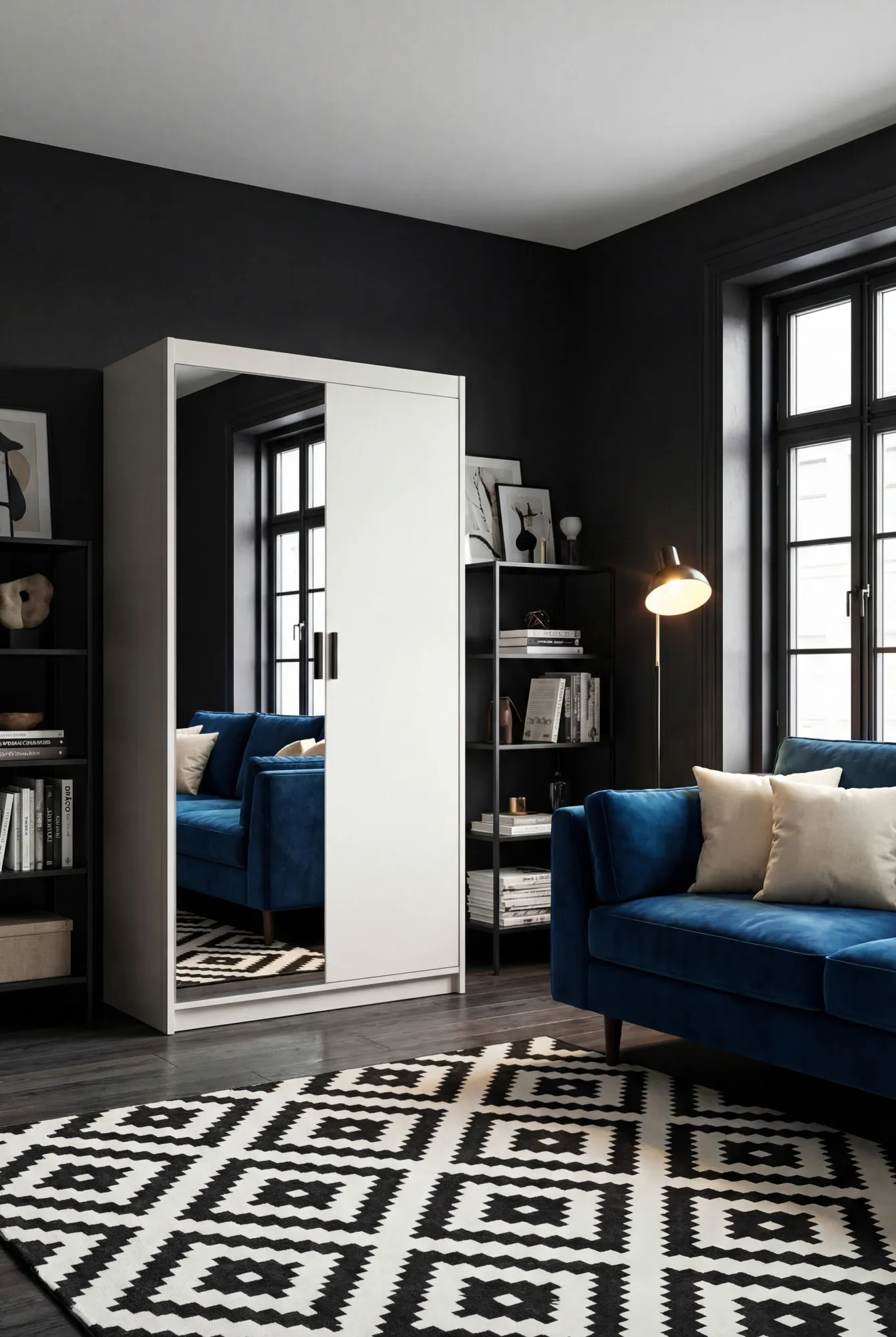 Aranżacja wnętrza z białą szafą Parioni 5X