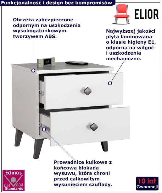 Biała nowoczesna szafka nocna z szufladami - Lorapis 5X