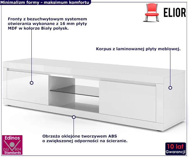 • Modny kolor: Biały połysk. W naszej posiadamy także inne białe szafki rtv. Stwórz własny praktyczny zestaw. Zamawiając produkty razem, oszczędzasz na współnej wysyłce.