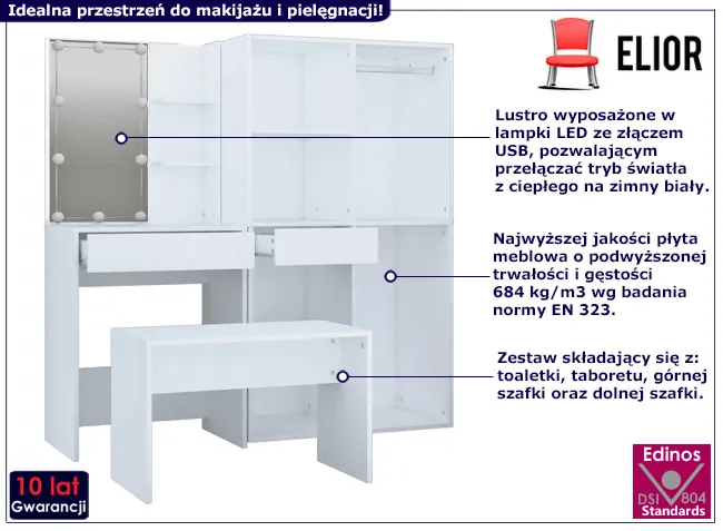 Dotyczy: Nowoczesna toaletka z taboretem i szafkami dąb sonoma - Reeva