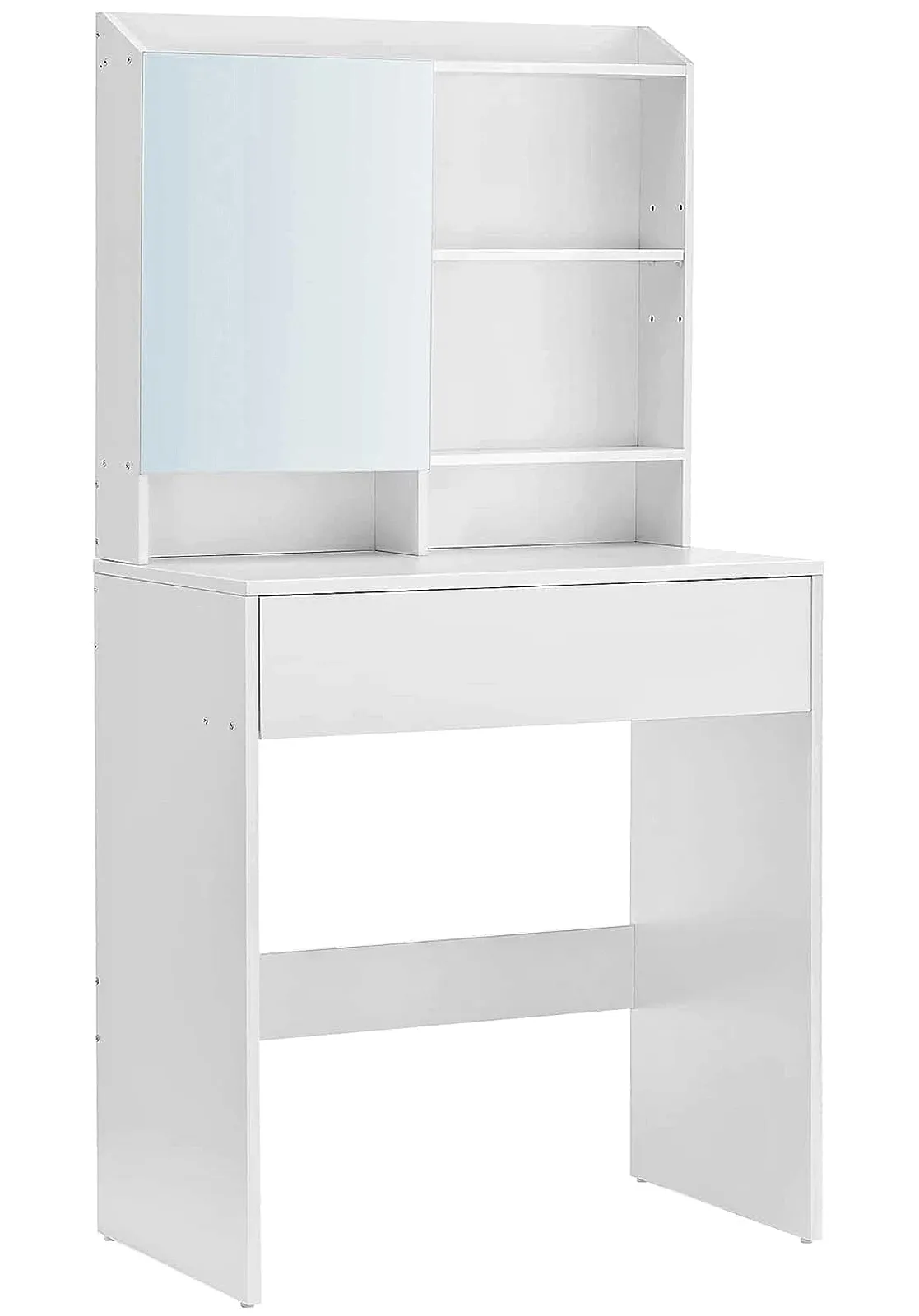 • Pojemne półki i praktyczna szuflada – idealne na kosmetyki, biżuterię i akcesoria