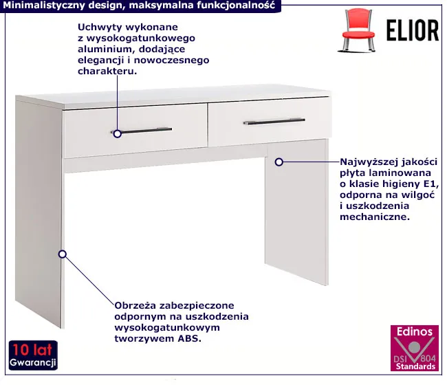 Wilhelm 29X marki Edinos Premium wprowadza do Twojej sypialni nie tylko funkcjonalność, ale i niepowtarzalny styl. Dzięki harmonijnemu połączeniu białego matu oraz połysku, toaletka ta stanie się eleganckim akcentem, który ożywi Twoje wnętrze. Wyjątkowe detale i minimalistyczna forma sprawiają, że Wilhelm 29X idealnie wpisuje się w nowoczesne trendy, jednocześnie zachowując ponadczasową elegancję. Nie czekaj, zamów toaletkę Wilhelm 29X już dziś za jedyne 688 zł i ciesz się doskonałością w swoim domu!