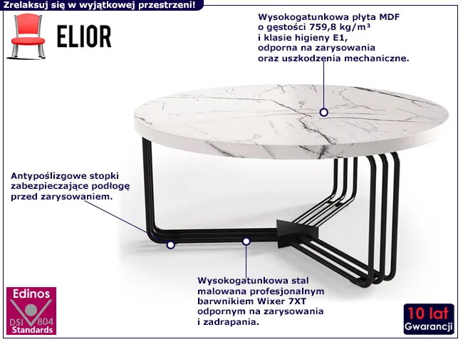 Chwila relaksu każdemu z nas kojarzy się w inny sposób. Jedni relaksują się podczas sprzątania, inni czytania książek, a jeszcze inni wolą ciszę, spokój i kubek pysznej, pachnącej kawy. Jednak dla każdego z nas ważna jest otaczająca nas przestrzeń - nie da się odpocząć w nieprzyjemnym dla oka wnętrzu. Właśnie dlatego marka Elior ma dla Ciebie nową ławę Avex 3X. Elegancki marmurkowy blat uniesiony został na modernistycznej, czarnej podstawie tak, aby ława sprawiała wrażenie lekkości i nie przytłaczała wnętrza. Dzięki temu zabiegowi mebel ten zyskał elegancki design, który sprawi, że w Twoim mieszkaniu zapanuje niepowtarzalna atmosfera. Jesteśmy pewni, że zrobi ona piorunujące wrażenie zarówno na Tobie jak i odwiedzających Cię gościach.