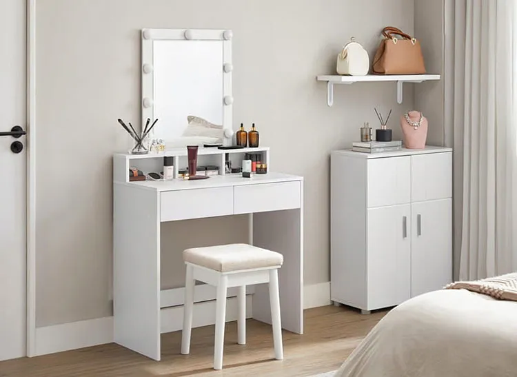 Sypialnia z wykorzystaniem skandynawskiej toaletki LED Wingo