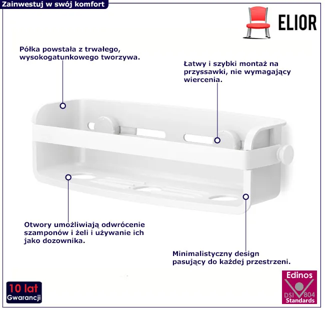 Łazienka jest miejscem, w którym relaksujesz się po długim dniu, a prysznic często okazuje się być chwilą wytchnienia. Dlatego tak ważne jest, aby każdy element w Twojej łazience dobrze spełniał swoją funkcję. Z myślą o Twoich potrzebach marka Elior stworzyła praktyczną półkę pod prysznic, która połączyła w sobie funkcjonalność, wygodę i elegancki design. To nowoczesna półka Xylon.
