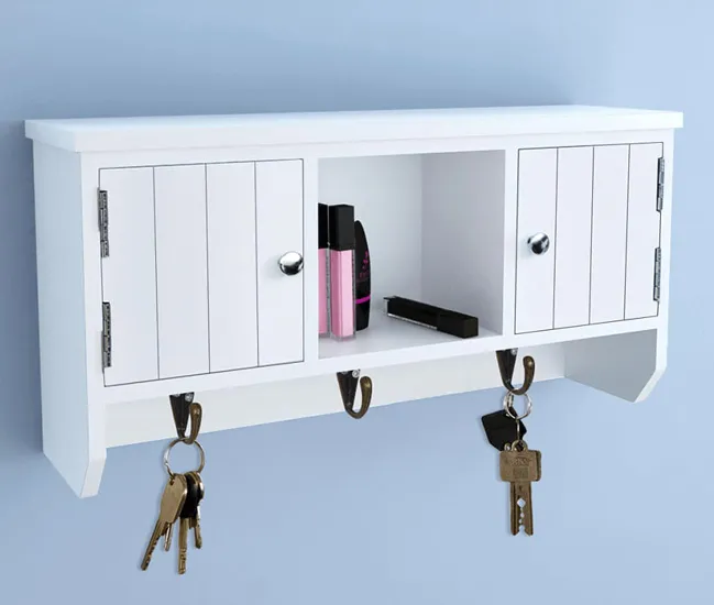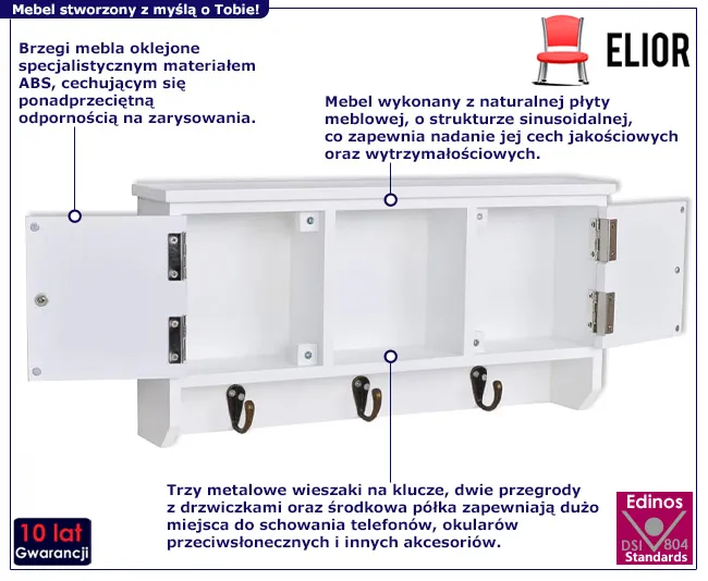 Dotyczy: Biała półka ścienna z wieszakami na klucze - Krega 4X