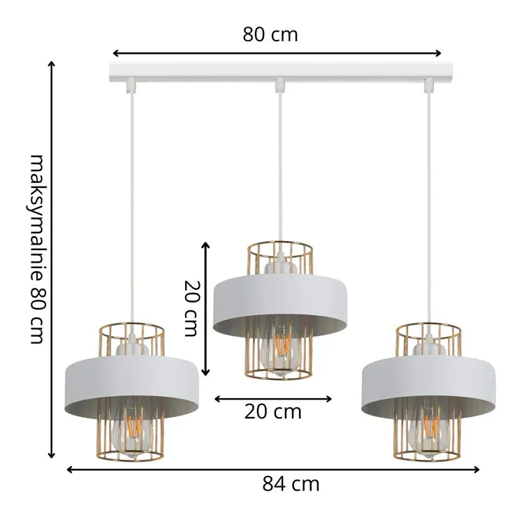 Biała potrójna lampa wisząca w stylu loft S241-Amla
