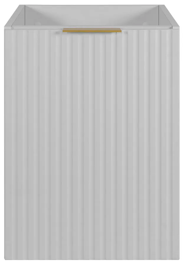 - Front wykonany z frezowanej płyty MDF 16 mm zapewnia trwałość i dekoracyjny wygląd. Ryflowana powierzchnia dodaje głębi i elegancji.