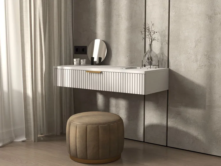 Toaletka wisząca Soberi marki Edinos Premium jest mistrzowskim połączeniem minimalizmu i elegancji, które składają się na jej spektakularny design. Choć forma toaletki skupia się na prostocie, to dzięki ryflowanemu frontowi i detalom prezentuje się niezwykle efektownie. Jest idealnym wyborem do nowoczesnej sypialni, w której stworzy kameralną oazę kobiecego piękna i stanie się jej dekoracją!