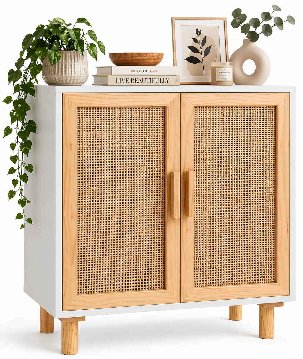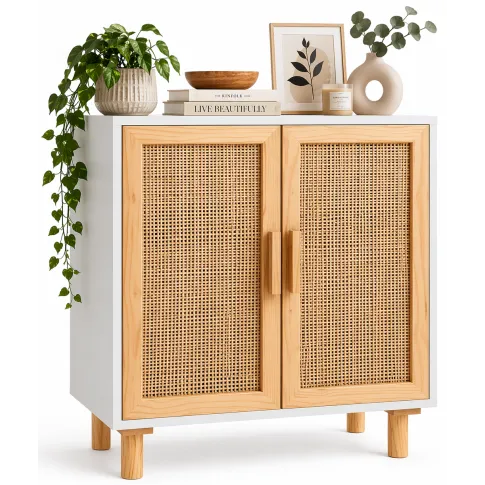Dotyczy: Czarna komoda z frontami z prawdziwego rattanu - Lucda 4X