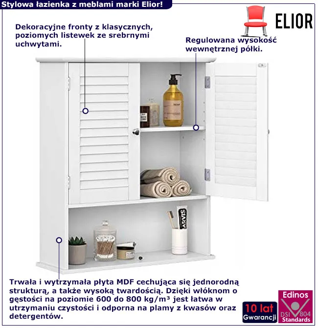• łatwy montaż umożliwia szybkie i samodzielne zainstalowanie szafki w wybranym miejscu