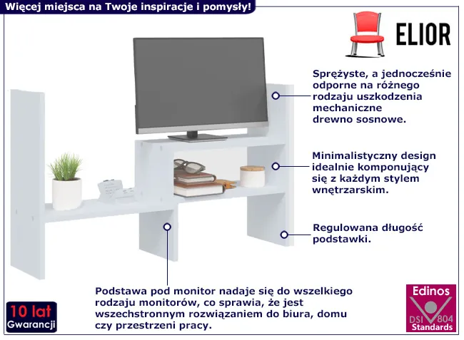 • Kolor: biały. Kliknij w link i sprawdź także inne nadstawki, półki na biurko w sklepie Edinos.pl. Stwórz swóją praktyczną przestrzeń.