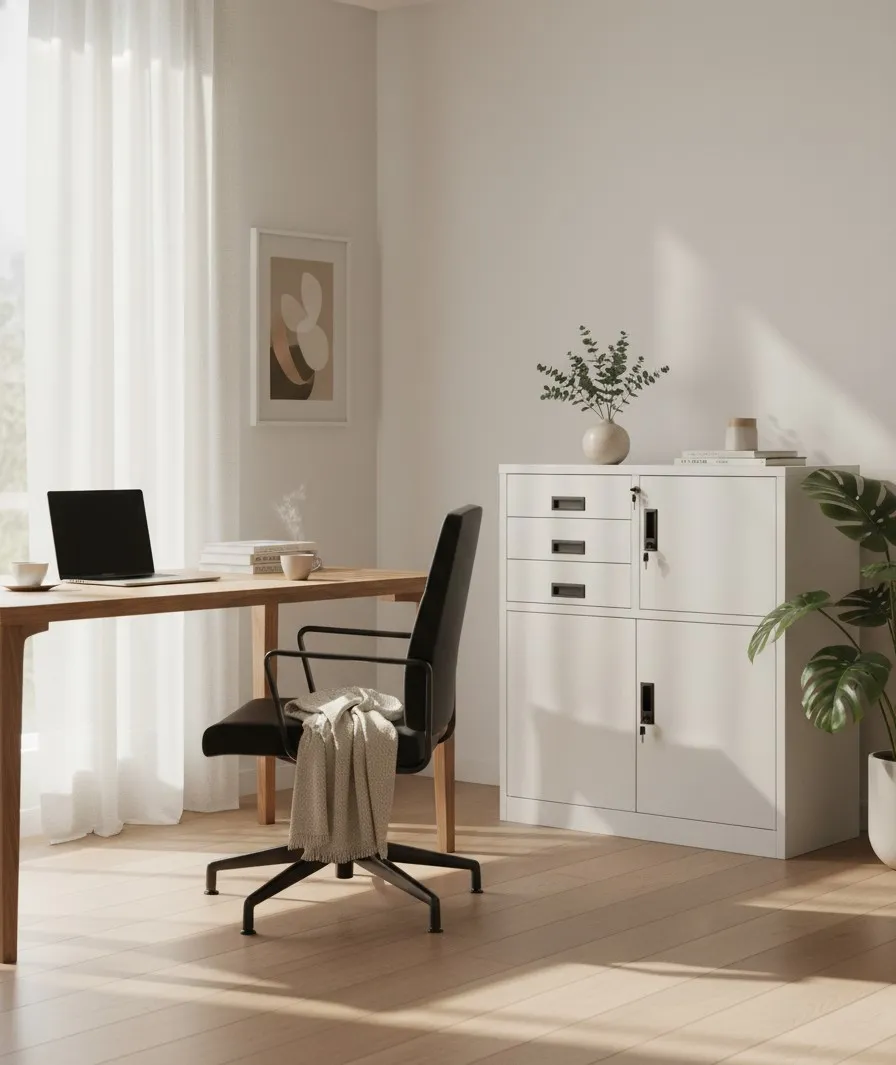 Dotyczy: Jasnoszara zamykana szafka do biura - Alez