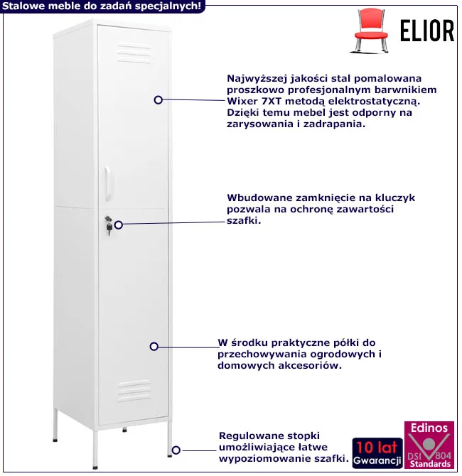Sprzątanie garażu Cię przeraża? Nie z nami! Wybierz praktyczną stalową szafę na nóżkach Dova 6X! Ta mocna konstrukcja idelanie sprawdzi się także w warsztacie, piwnicy a nawet we wnętrzu industrialnym. Uporządkuj z nią swoje narzędzia czy akcesoria ogrodowe. Specjalnie dla Ciebie oferujemy ją dziś w świetnej cenie 998 zł. Nie zastanawiaj się dłużej i zamów teraz online!