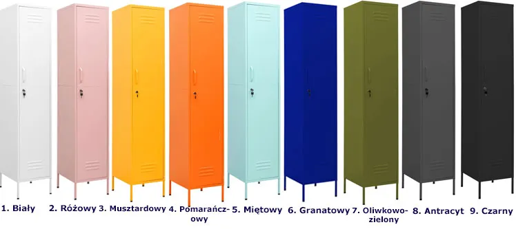 Kolory stalowej szafki zamykanej na klucz Dova 6X