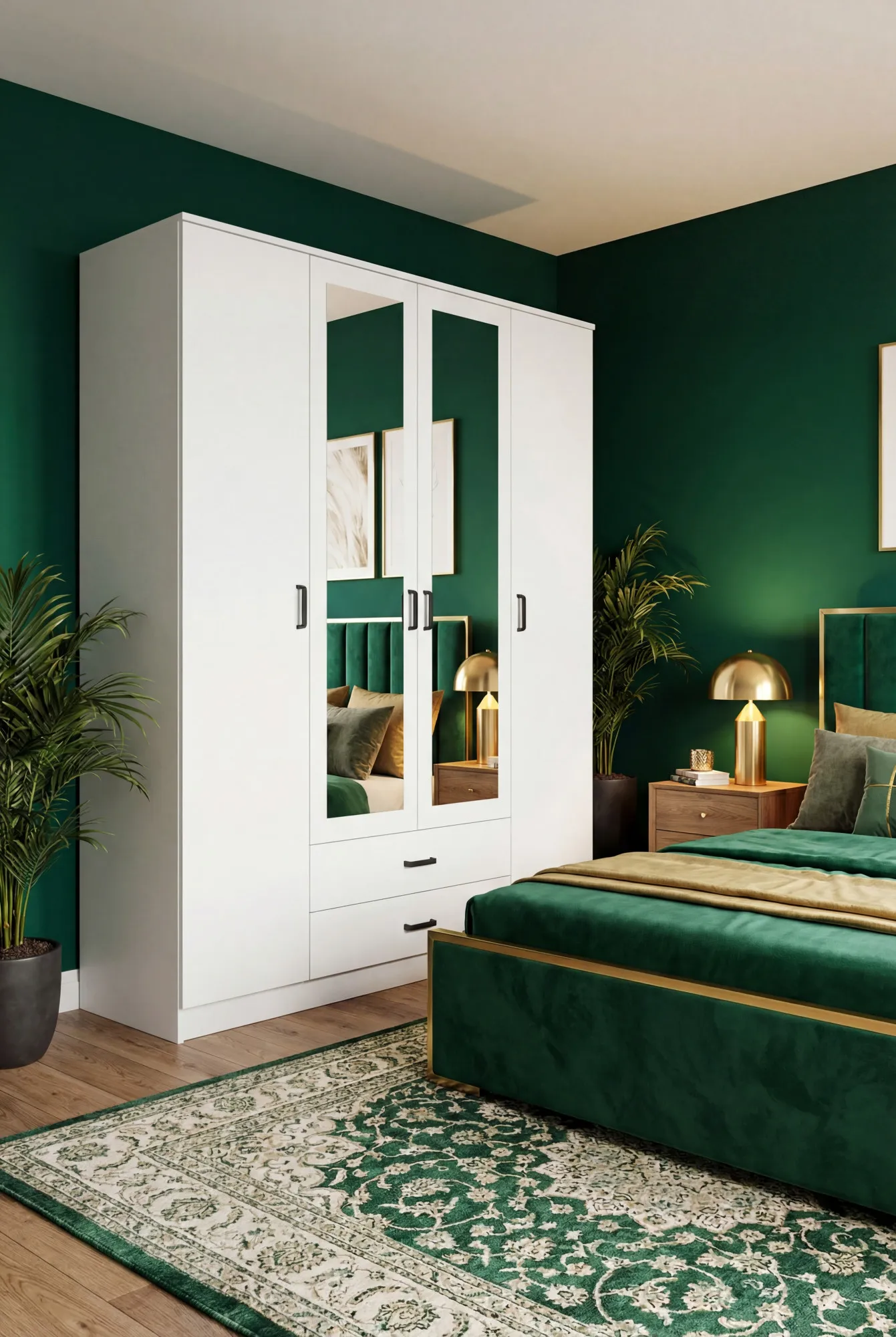 Biała szafa czterodrzwiowa z lustrem - Orvexa